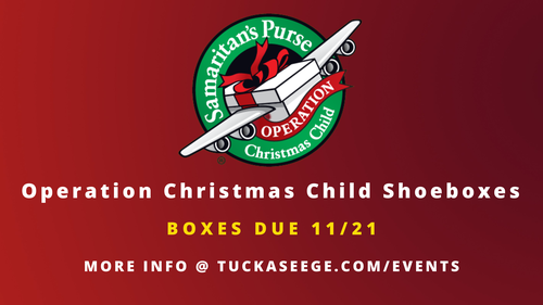 We will be collecting OCC Shoeboxes throughout the month of November. Please visit the OCC Website for gift suggestions and for a list of items that are not acceptable. Please turn your shoeboxes in at the Hub no later than Sunday, November 21st. We will have a team go deliver these shoeboxes to the OCC Facility.