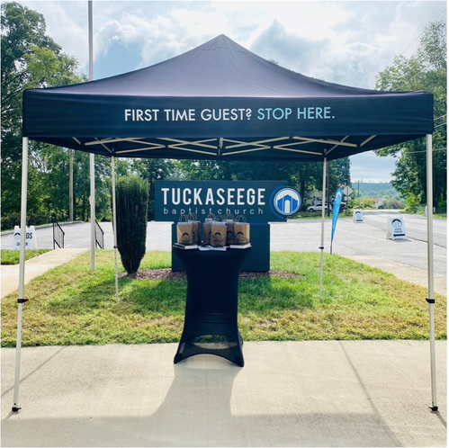 When you arrive at Tuckaseege you will see a First Time Guest tent out front. Stop by and a member of our FIT team will greet you, answer any questions you may have, and give you a gift for joining us.